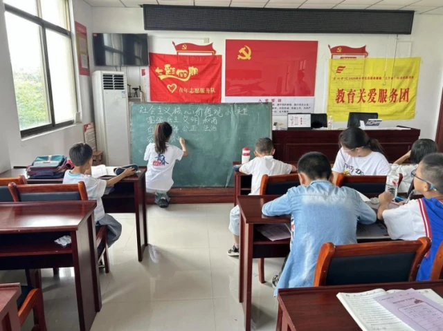 7月13日,盛夏的阳光洒满庐江县同大镇刘墩村,巢湖学院“守护童心 一同长大”七彩假期志愿服务团的志愿者们如约而至,为这里的孩子们带来了一场融合红色教育与益智启蒙的暑期盛宴,让乡村的夏日时光焕发出别样的光彩。