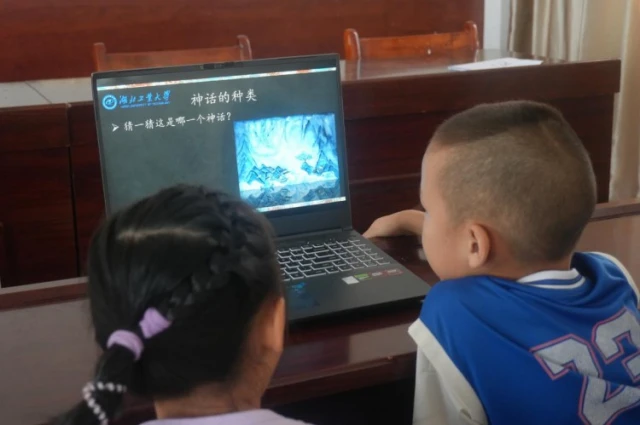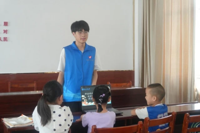 2025年7月22日上午,湖北工业大学“爱心托管班”暑期实践队在红安县上新集镇兴安冲村开展了以神话故事为主题的课程,围绕神话的内涵与魅力展开教学,先讲解神话作为古代人民认识自然、反抗自然的幻想故事所具有的非真实、抗争性、美好性等特征,结合女娲造人、盘古开天、精卫填海等案例解析开辟神话、自然神话、英雄神话的分类与内涵,还重点介绍了敦煌壁画中的神话故事,对比普通墙画与敦煌石壁画作的差异,讲解其采用植物、动物、矿物颜料的独特工艺及千年不褪色的奥秘,通过《鹿王本生图》解析九色鹿的故事,以乌鸦视角的视频引导孩子们理解诚信与感恩的寓意,结合飞天神女壁画展示反弹琵琶等经典形象并讲述天庭乐舞的神话内涵,互动环节中孩子们踊跃分享对神话的理解,在笔记本上记录相关内容,课程尾声志愿者强调敦煌文化保护的重要性,鼓励孩子们传承中华优秀传统文化,期间小朋友们认真观看课件、积极回答问题、记录要点,湖工大志愿者则播放神话故事视频并进行讲解。