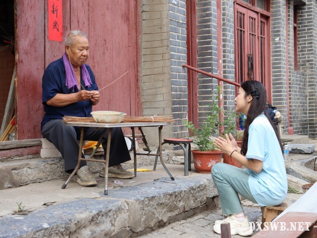 在洛邑古城东大街的青石板巷深处,实践团见到了与宫灯相伴一甲子的任玉章师傅。竹篾翻飞间,一段跨越时空的对话徐徐展开。“既然做了,就坚持到底”:13岁那年,任玉章跟着父亲拿起竹篾时,大概没想过这双手会与宫灯纠缠一辈子。从两眼一睁,啥也不懂“到如今信手拈来,60多年的光阴里,“竹条划过掌心的触感,是最踏实的慰藉”。竹条在他指间弯出千百种弧度,也刻下无数看不见的磨痕。