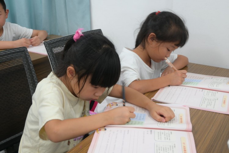 图为小朋友正在认真写作业。湖北工业大学 徐亮摄