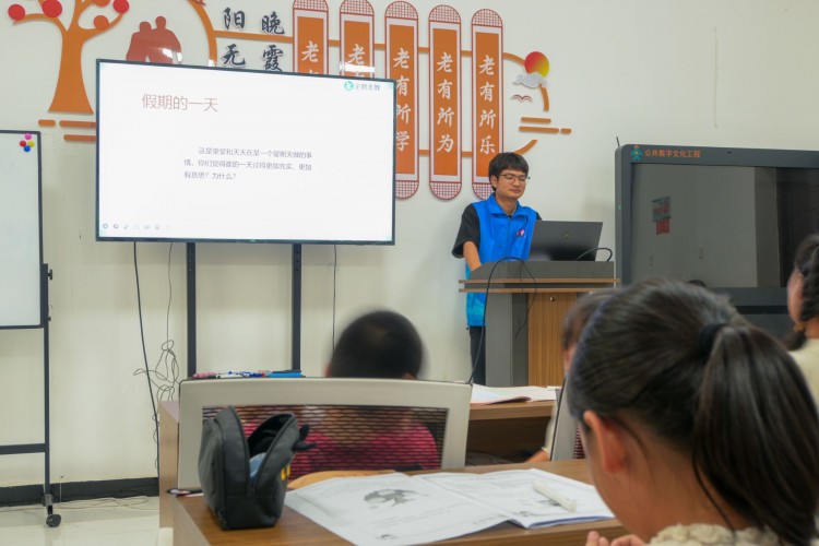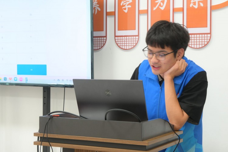 图为志愿者老师正在认真讲课。湖北工业大学 徐亮摄