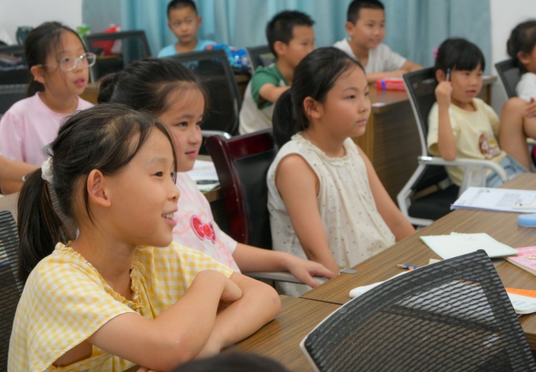 图为小朋友正在认真听讲。湖北工业大学 徐亮摄