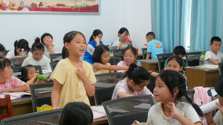 图为小朋友正在回答问题。湖北工业大学 徐亮摄
