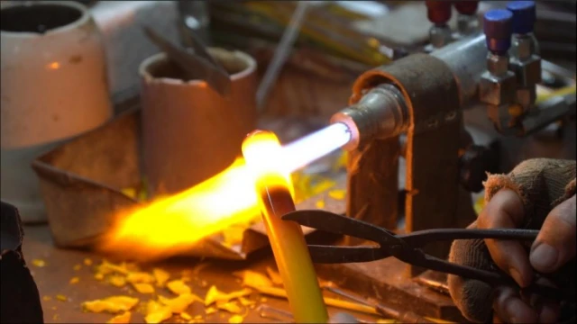 实践团成员在工作人员们的带领下参观了西冶工坊的车间,车间熔炉中翻腾的熔岩中,各样的矿石在1400度高温炙烤下褪去了原本的颜色,色泽变得浑然一体,难分彼此。炽热的炉火与匠人们湿透的衣服,不仅让实践团成员们明白非遗传承的不易,更让成员们切实了解到了琉璃的制作工艺。在工作人员的指导下,队员们体验了雕刻、吹塑等工艺,真正感受到非遗文化的魅力。
