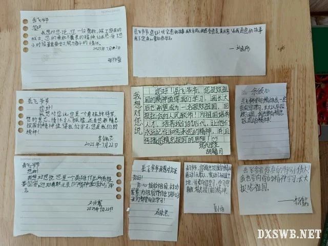 图为课程的最后小朋友们想对民族英雄岳飞所说的话。湖北工业大学 朱逸涵摄