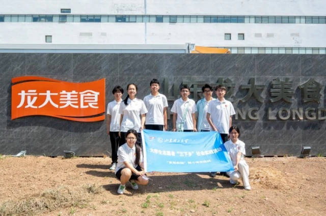 随后,实践团前往龙大食品集团进行调研。山东龙大美食股份有限公司是一家专业从事肉食品加工、屠宰、养殖、销售及预制菜制作的大型企业,其在全国预制菜行业名列前茅。