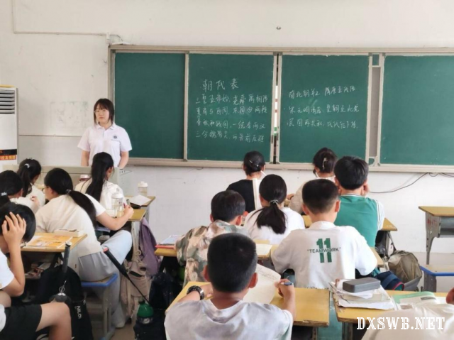 晨光微熹,浸润着湖北省黄冈市浠水县第二初级中学华桂校区。蝉鸣依旧,书声琅琅,与校园中愈发浓郁的惜别之情交织。值此湖北师范大学历史文化学院“爱童行”暑期社会实践队支教工作进入深化推进与总结提升的关键阶段,7月14日,全体队员以高度的责任感与饱满的热情,持续聚焦学生核心素养培育与爱国主义精神塑造,精心组织实施了系列富有成效的教学活动。数学、地理、历史以及文艺汇演节目精练等课程有序开展,为此次支教之旅书写下深刻的篇章。