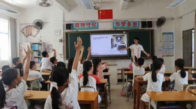 怀揣热忱服务乡村、真情浇灌奉献青春。为积极响应国家关于鼓励大学生社会实践与服务基层的号召,湛江科技学院育见行远实践团奔赴阳西县沙扒镇中心小学,成功开展了以“行至远乡,育见星光”为主题的暑期支教活动。在五天时间里,团队聚焦学生全面发展,创新设计了“德、智、体、美、劳”五育并举的多元化课程,从趣味实验到急救知识,从音乐舞蹈到心理辅导,力求为远乡的孩子点亮知识的“星光”,播撒希望的种子。