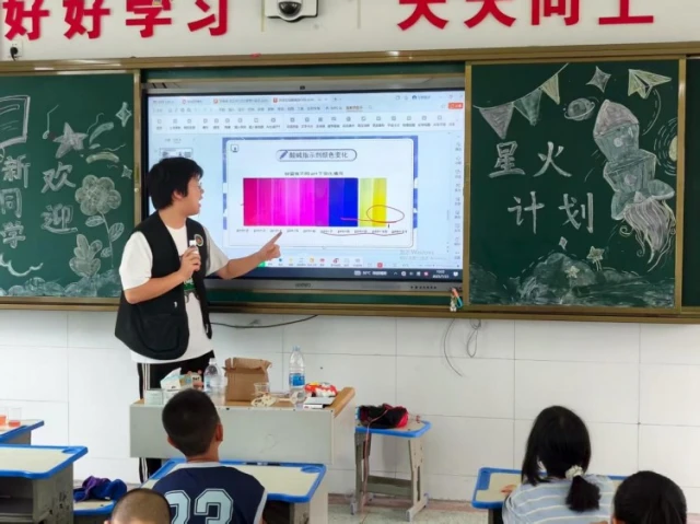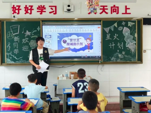 为激发小学生对科学的兴趣,培养他们的观察能力和实践操作能力,武汉东湖学院星火计划志愿服务队于2025年7月23日在郧阳区杨溪铺镇青龙泉小学开展以“探索化学奥秘”为主题的化学实验小课堂。此次课堂通过生动有趣的实验,吸引了众多学生积极参与,让孩子们在轻松愉快的氛围中走进了奇妙的化学世界。