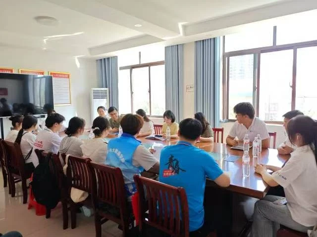 图为志愿服务团与同大镇镇政府工作人员在会议室围坐交流。杨佳慧 供图