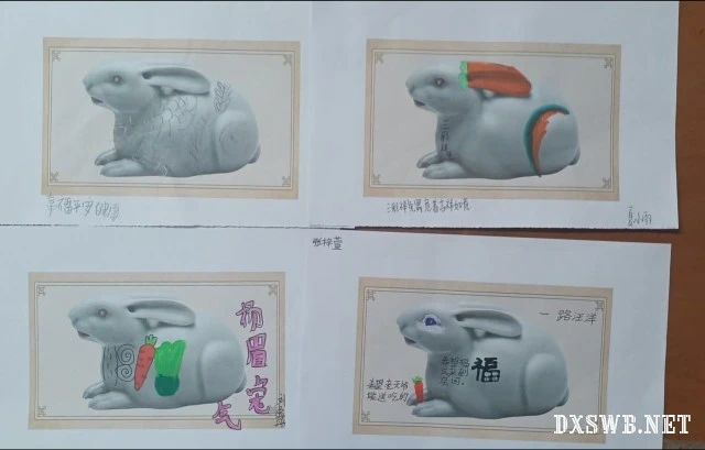 图为课程中小朋友们对文物“明代兔形香薰”进行创意彩绘的作品展示。湖北工业大学 朱逸涵摄