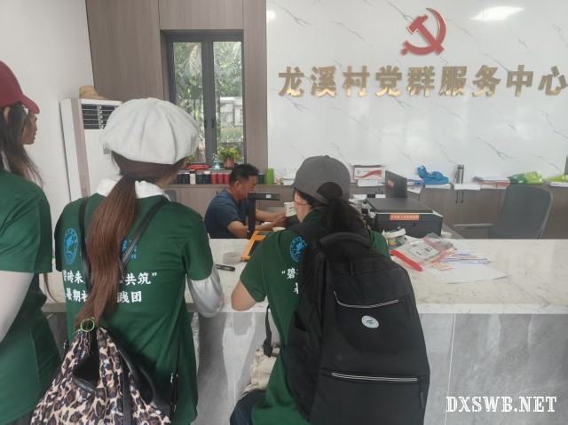实践队来到龙溪村村委会,与村支书及几位村干部展开座谈。会议室的墙上挂着龙溪村的地图,标注着3处重点古建筑遗址 —— 周氏宗祠、明清古驿道、百年水车坊。