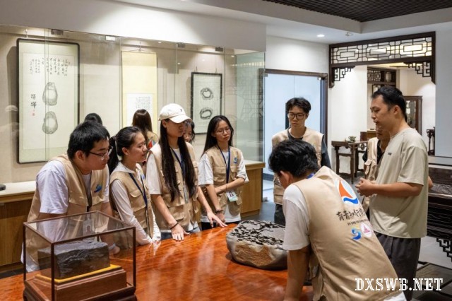 图为程朗老师讲解端砚。供图 徐力图为育青知行实践团成员与程朗老师合影。供图 苏政文