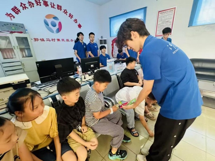 图为实践队员为孩子们发放奖励 供图:周伊天