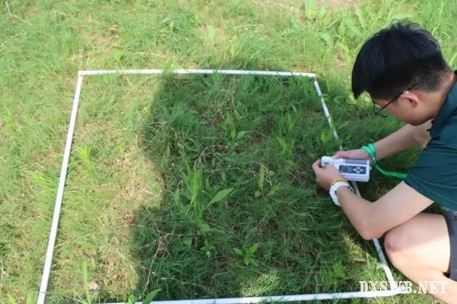 调研现场,科技蓝与生态绿交相辉映。队员们分工协作,严谨有序。一队员手持检测仪,另一队员根据在屏幕上跳跃的实时数据,记录关键指标。此外,小分队将专业知识运用到实践上,采用样方调查法,细致标记乔木、灌木、地被的分布点位与种类密度,绘制植被覆盖的“生态地图”。