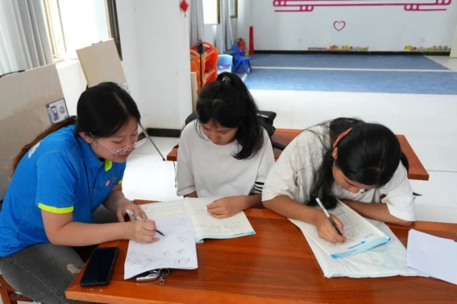 实践团成员在课堂上开展了答疑活动,针对同学们进行了“一对一辅导”,耐心为他们解答疑惑。实践团成员表示,“学习要知其然,更要知其所以然。”在讲解中将每道题目背后的知识点拆分开来,回归课本,并针对每一位同学知识薄弱点进行系统讲解,传授相关题型解题技巧。同学们认真聆听,积极配合,不懂就问,让自己在课堂中真的有所收获。