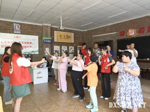 在 “学生” 与 “老师” 的角色互换中,实践团成员们也拿出了自己的 “看家本领”:他们化身舞蹈老师,带领家园成员们跟着音乐节奏舞动,用轻快的舞步传递快乐。为了适配家园成员们的身体条件与学习节奏,实践团成员提前选定了合适的舞蹈,考虑到残障人士的学习特点,还将舞蹈动作拆解为基础模块,像手部摆动幅度、脚步移动轨迹等,都逐一进行清晰示范。教学过程中,家园成员们认真模仿跟随,实践团成员始终保持耐心,不仅重复动作要领、轻声鼓励,还灵活调整教学节奏,比如放慢速度、借助辅助手势引导。经过反复练习,家园成员们逐步跟上韵律,在舞动中感受艺术活力,脸上渐渐露出自信的笑容。之后,实践团成员又组织了丰富多彩的小游戏,大家在欢声笑语中拉近了距离;还和家园成员们一起上课,共同学习知识、探讨问题,课堂上不时响起阵阵掌声。