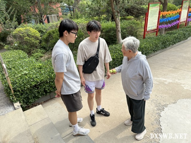 午后阳光正好,实践团成员邀请老人到院子里散步。他们小心翼翼地搀扶着老人,沿着小径慢慢前行。一路上,老人给成员们介绍院子里的花草树木,老人们也分享着自己曾经的户外经历。微风拂过,带来阵阵花香,老人们的脸上洋溢着幸福的笑容。