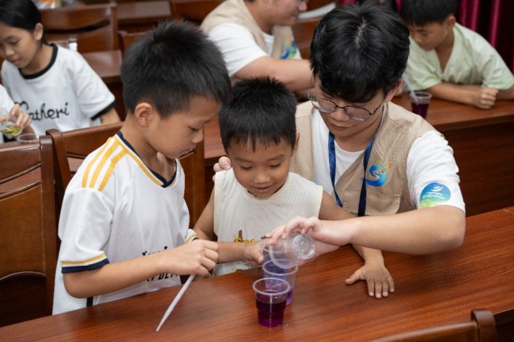 图为实践团成员与学生做实验。供图 徐力