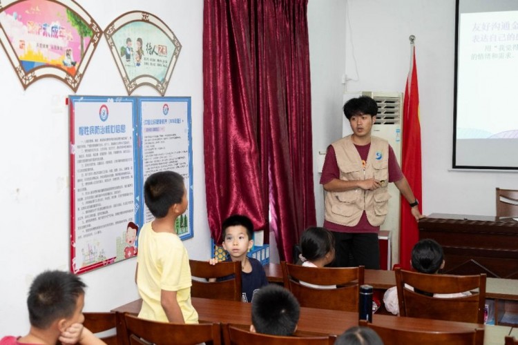 图为实践团成员为学生讲解情绪管理。供图 徐力