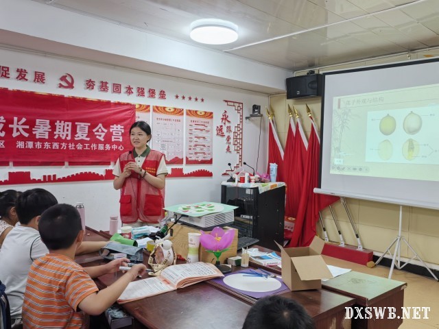 主讲人贺玲老师以“莲城”湘潭的文化密码开启课堂。她向孩子们娓娓道来:“东汉张衡的《西京赋》、王勃的《滕王阁序》、范仲淹的《塞下秋思》……古人笔下的‘衡阳雁去’,早已为这片土地烙印下诗意基因。”当投影展示社区附近的“君子莲”城雕时,孩子们发出惊叹——这座1985年落成的艺术品以黑色大理石基座象征“出淤泥而不染”,亭亭玉立的采莲姑娘手捧莲蓬,被50道喷泉环绕,恰如湘潭这座“莲城”对高洁品格的永恒追求。