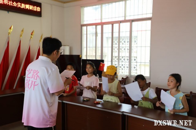 美育课堂进乡村:在孩子心中播下艺术种子“‘小时候,我常伏在窗口痴想,山那边是什么呢?’——注意语气要像看到远方的山和河一样舒展!”在永富村村民活动中心,志愿者正带领孩子们练习诗朗诵。针对不同年龄段的孩子,团队设计了“趣味发音”“情感表达”等分层教学环节,通过“诗句接龙”“情景表演”等游戏,让孩子们在欢笑中感受语言韵律之美。二年级的小朋友王玉欣举着刚学会的朗诵卡片,兴奋地说:“原来朗诵可以像唱歌一样好听!”
