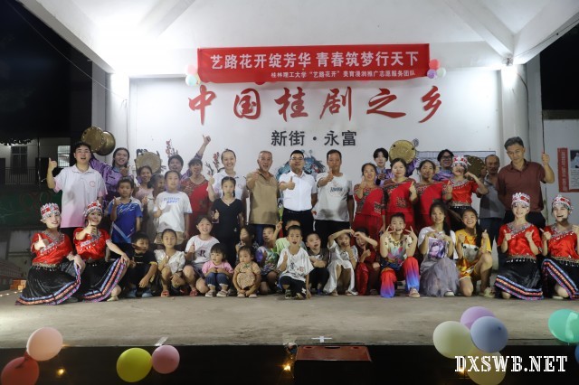 7月18日至19日,桂林理工大学校大学生艺术团“艺路花开”美育志愿服务团队走进桂林永富村,在村民活动中心、文化广场等场所开展为期两天的美育实践活动。团队不仅为村民和儿童带来诗朗诵与创新啦啦操课程,还结合当地红色文化、农耕文化及非遗元素策划文艺汇演,以艺术为纽带激活乡土文化活力,为永富村“振兴示范”建设注入文艺动能。