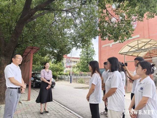 7月25日上午,湖北师范大学团委书记刘晓光、历史文化学院党委副书记黎哲、体育学院党委副书记杨丽一行,来到“爱童行”实践队支教地点湖北省黄冈市浠水县第二实验初级中学华桂校区,实地慰问实践队全体队员,了解支教课程开展情况,关切队员生活状况,为酷暑中坚守岗位的师生们送来关怀与鼓励。
