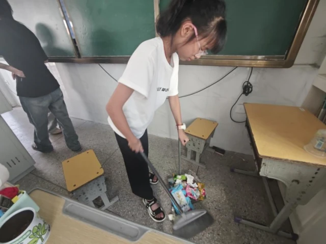 “我们希望用行动代替言语,告诉孩子们珍视环境、热爱劳动的意义。”朝夕守望志愿服务队队长一边清扫着走廊一边说,“打扫不仅是美化校园,更是想传递一种责任与担当——无论何时离开,都应留下美好。”一位学生说道。