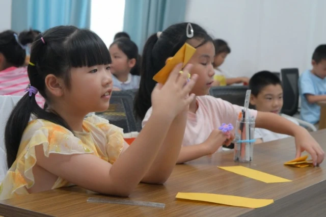 图为小朋友正在认真折纸。湖北工业大学 王世成摄