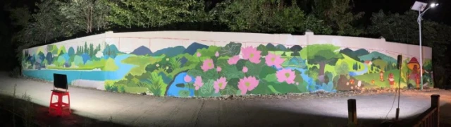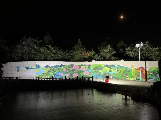 如今,这幅95平方米的墙绘不仅填补了景观空白,更以艺术语言提前“剧透”景点特色:萤火虫元素呼应基地的夜游项目,溪流曲线引导游客探索亲水景观,古屋轮廓唤醒对历史建筑的好奇。当地村民表示,墙绘完成后,已有不少游客驻足拍照,部分人因墙绘特意延长停留时间,“从匆匆路过变成慢慢逛,连带着村口附近的小卖部生意都好了些。”