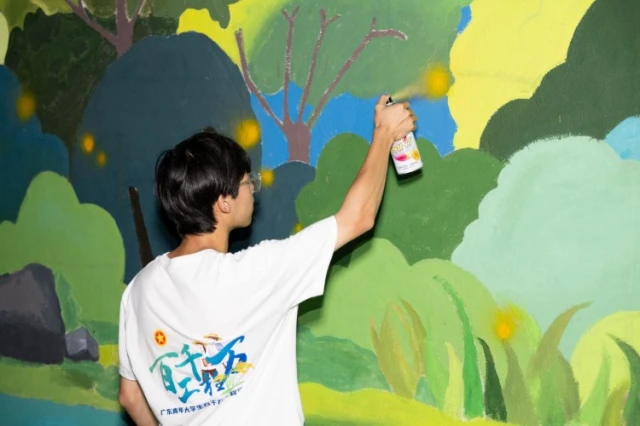 图为育青知行实践团成员喷涂萤火虫图案。供图 徐力