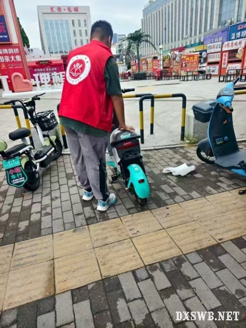行动伊始,实践团成员们便集中力量,对随意停放在盲道上的共享单车和电动车进行了重点清理。大家齐心协力,将一辆辆阻挡通行的车辆搬移至指定停车区域,确保盲道砖块凸起的纹路重新暴露在阳光下,清晰可辨。