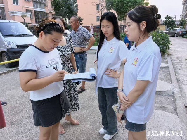 图为大学生志愿者与社区工作人员进行上门宣传中国大学生网报通讯员 李子妍 供图