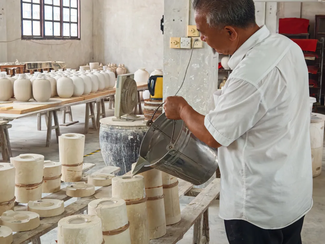 陶瓷制作的第一步是准备原料。大埔地区优质的高岭土是制作陶瓷的天然宝藏。工人们将高岭土经过筛选、清洗和晾晒,去除杂质,确保原料的纯净度。这些经过处理的高岭土,质地细腻,是制作高品质陶瓷的基础。