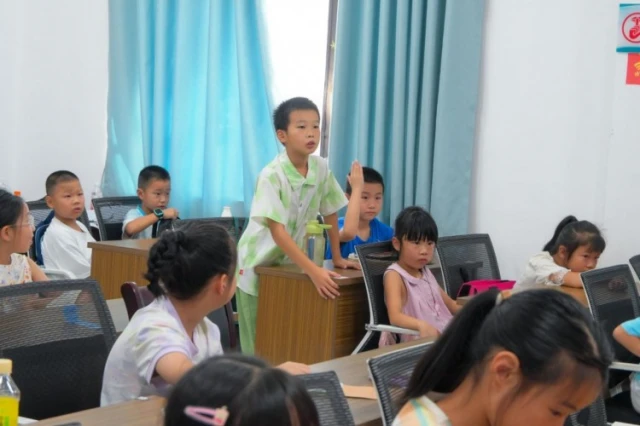 图为小朋友在积极回答问题。 湖北工业大学 王世成摄