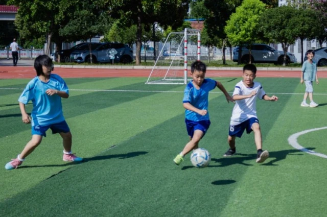 理论讲解结束后,课堂转战绿茵场,“足球少年”们联合青火志愿服务队队员进行了一场六人制友谊赛,张忠老师亲自为其执裁。尽管骄阳似火,但赛程焦灼、比分激烈,球员们都挥汗如雨、英姿飒爽。这场比赛最终以2:1落下帷幕。