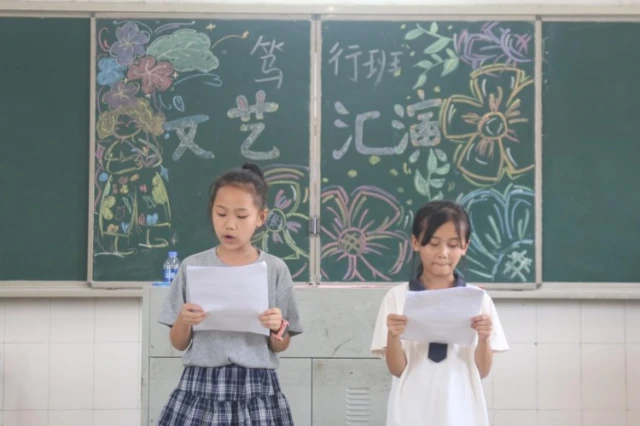 在汇演筹备阶段,实践团成员鼓励学生踊跃申报节目,学生自主申报了涵盖舞蹈、歌唱、朗诵等形式的多个节目。实践团对申报节目进行登记整理,形成节目单,并利用课余时间协助学生进行简单排练指导。汇演当天上午,成员们共同布置场地,包括摆放桌椅、绘制黑板,并规划好表演区与观众区。