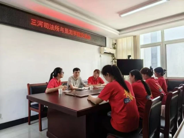 夏日的阳光透过窗户,洒在三河司法所的会议室内。我们实践团队一行身着统一红色队服,怀揣着对基层环保法治实践的好奇与求知欲,围坐在会议桌前,一场关于环保法治实践的深度交流之旅正式拉开帷幕。