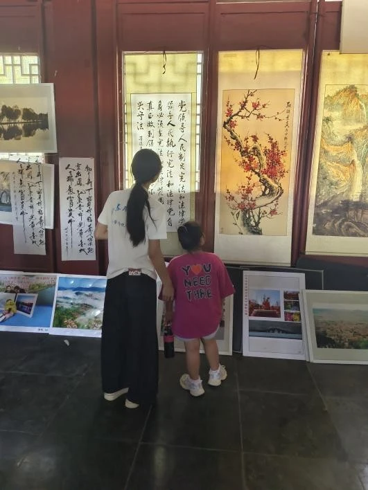 经过两小时的徒步,队伍抵达目的地五阳湖,开阔的湖光山色令孩子们赞叹不已。实践团随即组织孩子们在休憩交流中分享心得,现场洋溢着探索与求知的热情。随后,实践团成员同孩子们一起参观了五阳湖博物馆,深入了解了当地的人文历史。