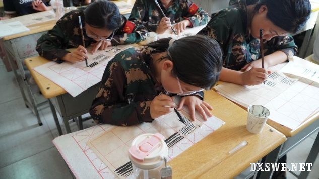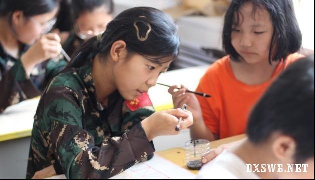 孩子们认真练习学习书法(杨佳阳摄)