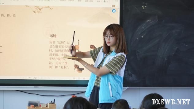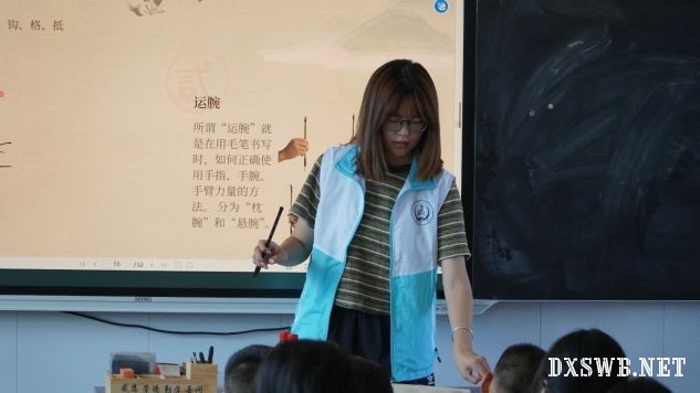 支教队成员讲解书法基础及握笔姿势 (杨佳阳摄)
