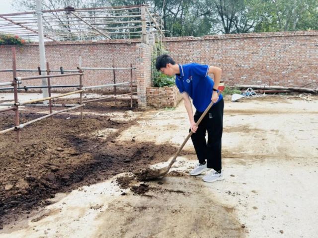 图为实践团队打扫养殖场卫生 供图:周伊天