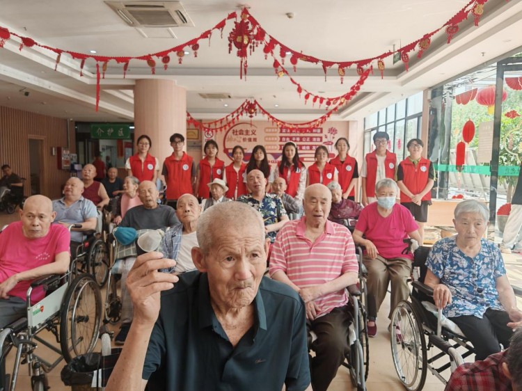 走进老年公寓看望老人,意义深远。不仅能给老人带去陪伴与温暖,缓解他们的孤独感,还能传承尊老敬老美德,增强社会责任感。在与老人的交流中,志愿者们倾听岁月故事,感悟人生智慧,实现代际间的情感联结与精神传承,促进社会和谐共融 。本次假期,“沐光盛夏,夕照温情”团队查硕硕,潘万强等成员来到老年公寓,筹划一系列表演为老人带来欢乐。