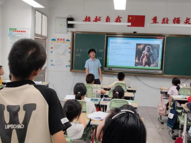 2025年7月22日,蒲团乡横山中心小学的课堂上演了一场生动的“生命进化”探索之旅。朝夕守望志愿服务队的徐老师以“我们从何而来?生命如何适应环境?”为线索,通过沉浸式故事讲解、实物模型与跨学科案例,带领学生解码人类进化与生物适应的奥秘。