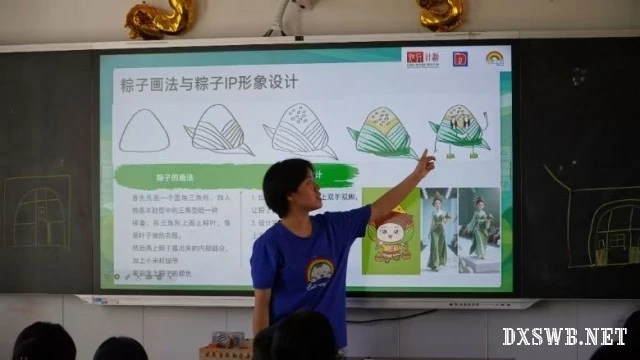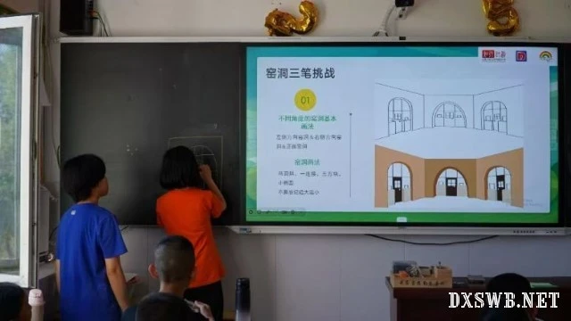 课程的第一部分以“唤醒记忆”为主题。孩子们通过观看青塘航拍纪录片,仔细观察家乡的教堂、传统民居、粽叶晾晒场景等特色景象。随后,支教队员通过提问互动,帮助孩子们梳理记忆中的青塘细节,例如教堂的建筑材质、窑洞的形状、粽叶晾晒的分布等。这一环节不仅加深了孩子们对家乡的认知,也为后续的创作奠定了基础。