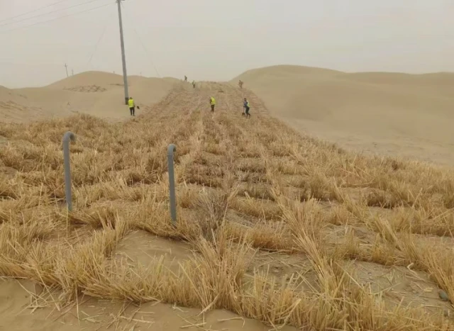 此次麦草方格防风固沙活动,是当地推进生态修复工程的重要举措之一麦草方格技术因其成本低、效果好、材料易获取等特点,成为沙漠治理的重要手段,在多个沙漠治理项目中发挥了显著作用。