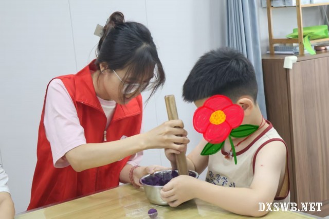 为培养特殊儿童的生活技能,增强其自信心与动手能力,8月7日下午,"人生三部曲"社会实践团赴济南市鲁智特殊儿童服务中心开展山药紫薯糕制作活动。本次活动以“儿童自主体验”为核心,在服务中心老师的指导下,孩子们全程参与制作,实践团成员提供辅助,共同完成了一次富有意义的烘焙体验。