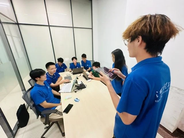 图为实践团在研讨室讨论解决方案。周伊天供图