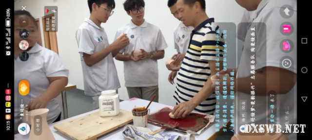 ▲图为队员正在直播向师傅学习装饰陶瓷的技术